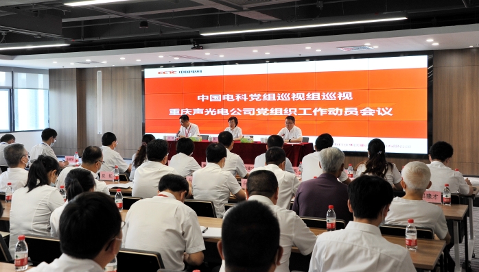 根据中国电子科技集团公司党组统一部署,9月24日,集团党组第四巡视组巡视十大娱乐老平台重庆声光电有限公司党委工作动员会召开,巡视组组长周菲同志传达集团党组有关要求,通报巡视任务和工作安排;重庆声光电公司党委书记、董事长王颖同志作表态发言,党委副书记、总经理王涛同志主持会议。党组巡视组副组长赵波、高政华及全体组员,声光电公司领导班子成员、集团首席专家出席会议,声光电公司干部、职工代表及退休人员代表参加会议。9所干部职工代表在绵阳以视频形式参加会议。